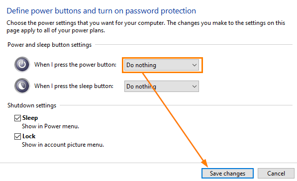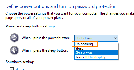 Also select "Do nothing" from the drop-down menu for the power button.
