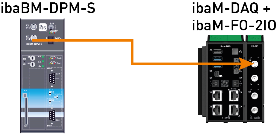 ibaPADU-S-IT-2x16 or ibaPADU-S-CM with ibaMS modules, ibaBM-DDCS, ibaBM-SiLink, ibaBM-eCAT, ibaBM-DP, ibaBM-PN, ibaPADU-D-8AI-U/-8AI-I (up to 15 devices can be cascaded in one ring), ibaPADU-4-AI-U, etc. |