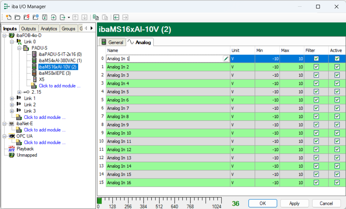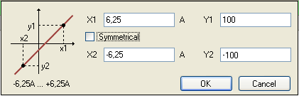 Here, you can define an upper limit for the measuring range. The analog voltage standard level of +10 V is assigned to a physical variable (e.g. +100 °C).