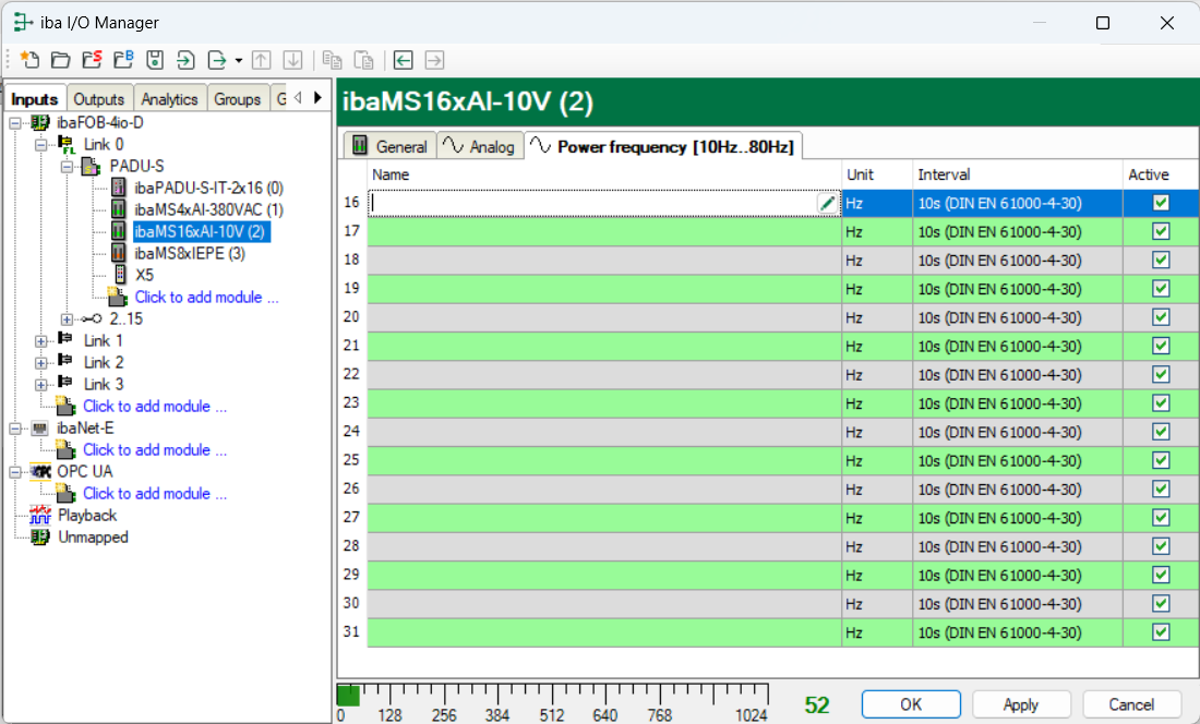 You can select the measuring interval via a drop-down list: 1s or 10 s (according to DIN EN 61000‑4‑30).