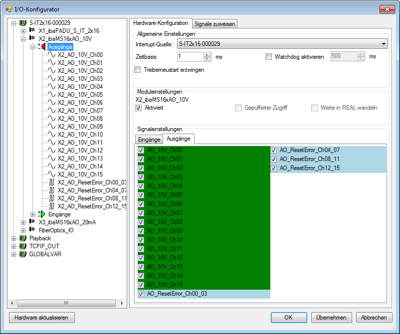 ibaMS16xAO-10V bietet folgende Signalgruppen: