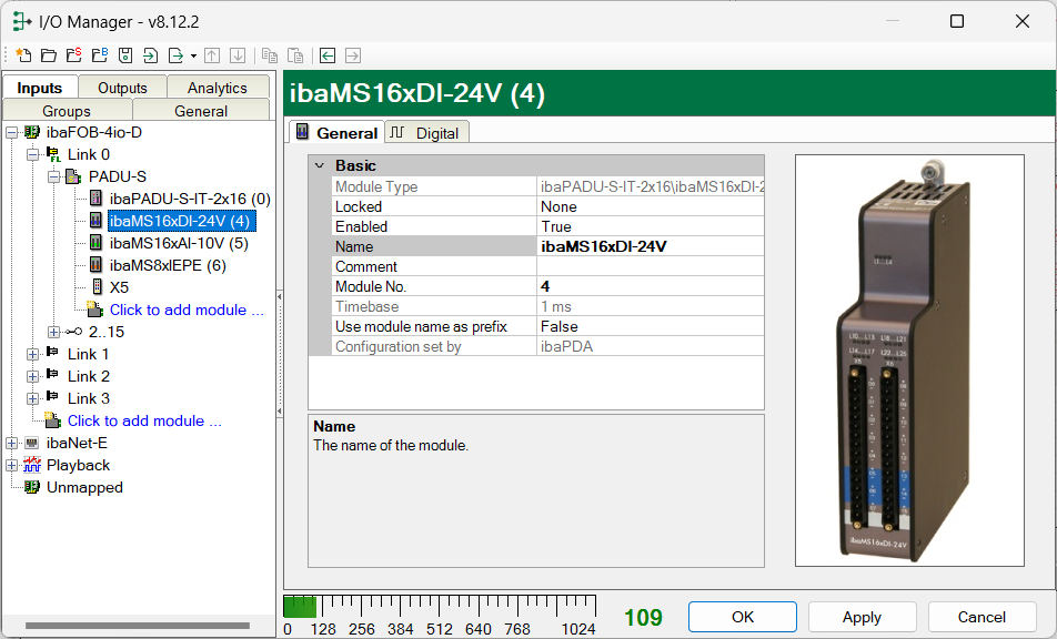 This internal reference number of the module determines the order of the modules in the signal tree of ibaPDA client and ibaAnalyzer.