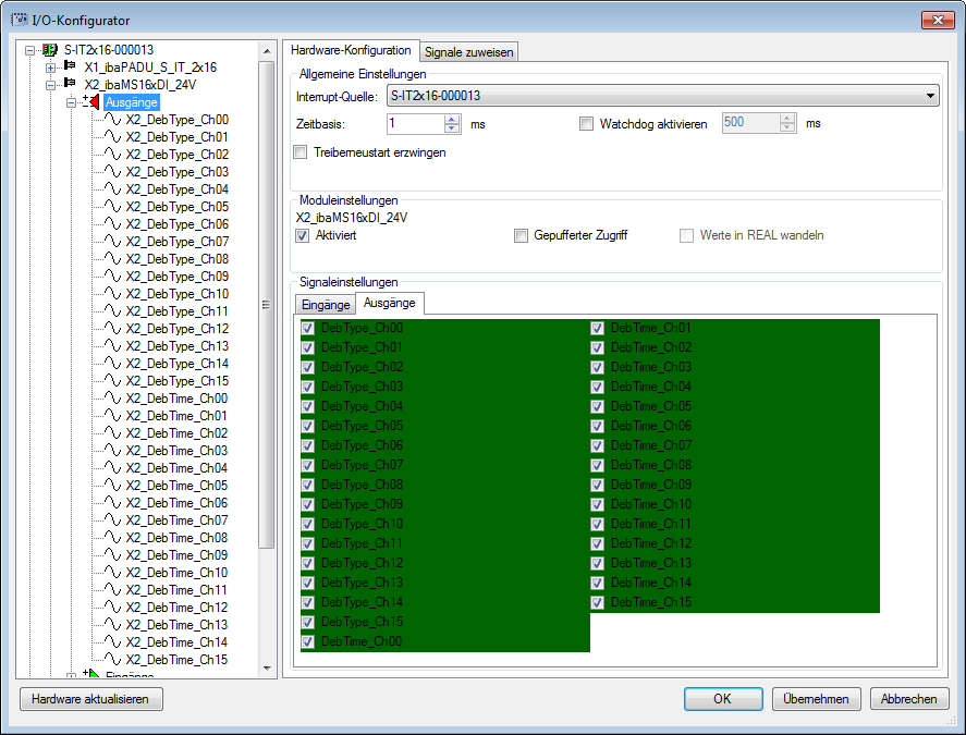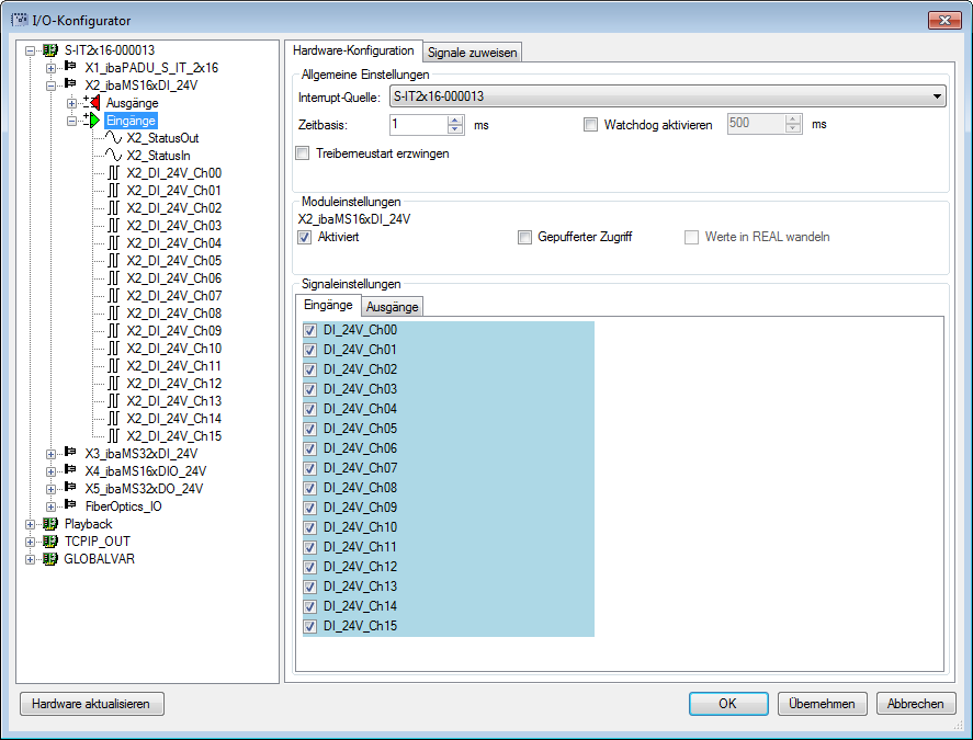 Die Signale werden im I/O-Konfigurator von ibaLogic-V5 konfiguriert.