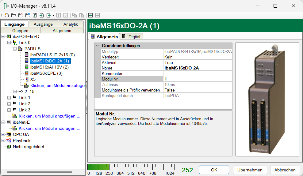 Diese interne Referenznummer des Moduls bestimmt die Reihenfolge der Module im Signalbaum von ibaPDA-Client und ibaAnalyzer.