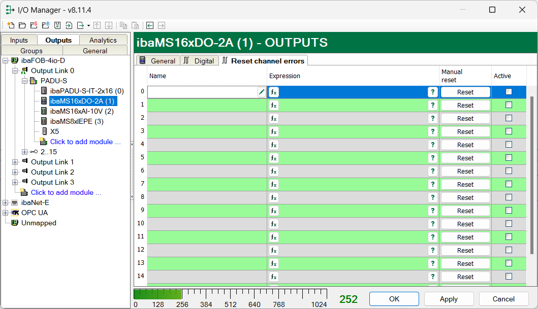 Make the following settings in the Reset channel errors tab, in the Outputs tab: