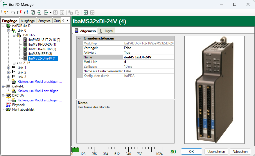 Diese interne Referenznummer des Moduls bestimmt die Reihenfolge der Module im Signalbaum von ibaPDA-Client und ibaAnalyzer.