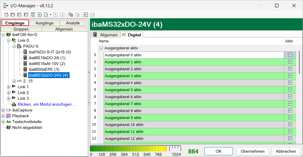 Ausgangskanal [0…31] aktiv: Ausgangssignal ist betriebsbereit