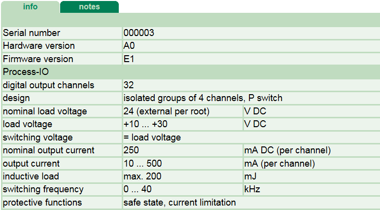 werden allgemeine Informationen und technische Daten der Modul I/Os angezeigt.