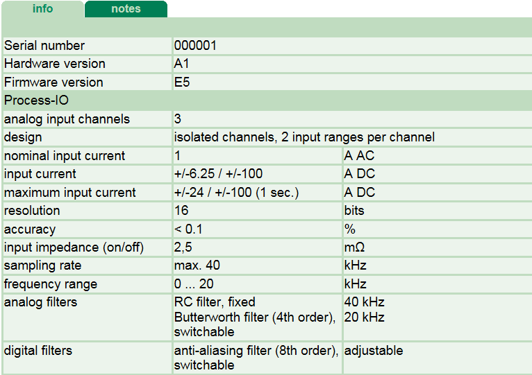 tab displays general information and technical specifications of the I/O module.