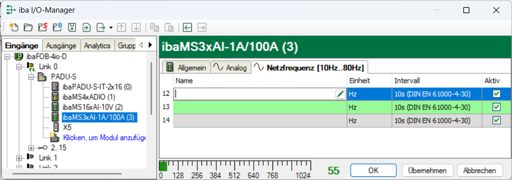 Ist die Netzfrequenzmessung aktiviert, wird dieses Register zusätzlich eingeblendet.