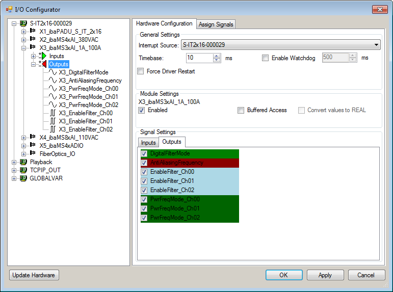 The signals can be configured in the I/O Configurator of ibaLogic-V5.