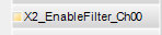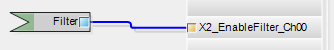 Ziehen Sie zunächst das Ausgangssignal auf die Ausgangsrandleiste der Programmieroberfläche, hier “X2_EnableFilter_Ch00” für den analogen Eingang 0.