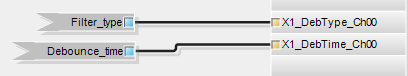 If you want to use debounce filters, these are created as configuration output and configured as Off-task connector (OTC) or function block.