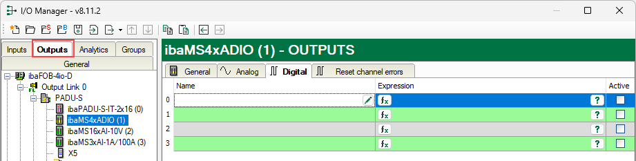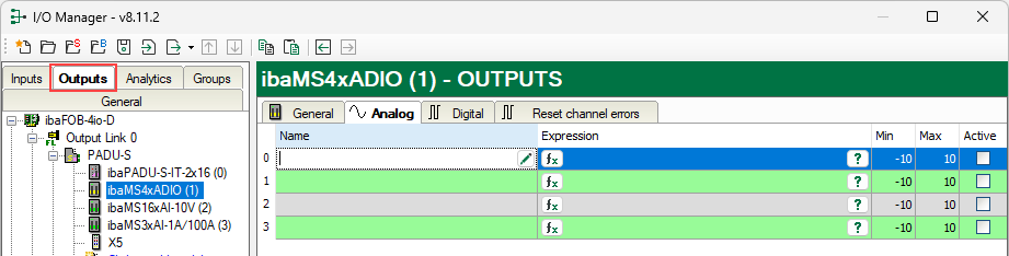 The Analog and Digital tabs have the same structure. The following parameters can be set: