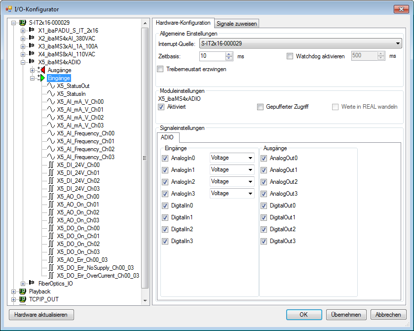 Die Signale werden im I/O-Konfigurator von ibaLogic-V5 konfiguriert.