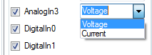 Über ein Drop-down-Menü kann zwischen Spannungs- oder Stromeingang gewählt werden.