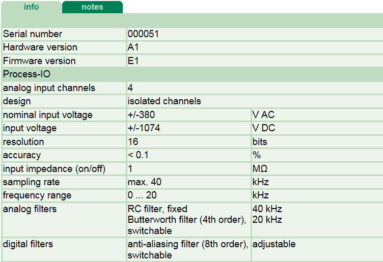 tab displays general information and technical specifications of the I/O module.