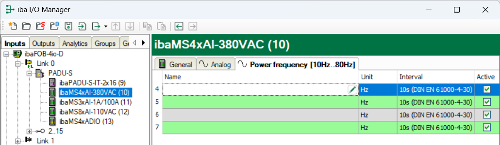 You can select the measuring interval via a drop-down menu: 1s or 10 s (according to DIN EN 61000-4-30).