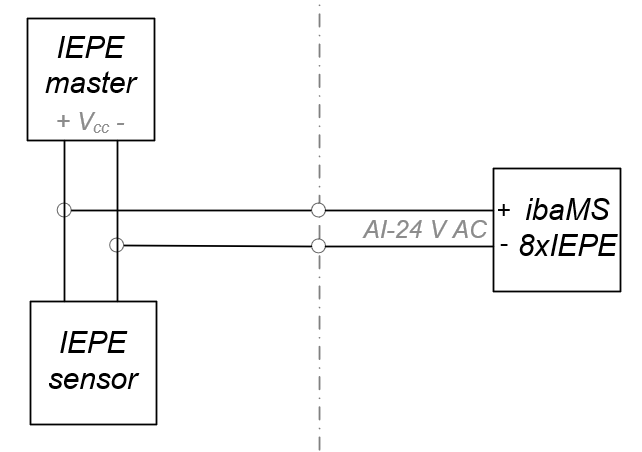 If the iba system is used to monitor IEPE sensors that are already present and supplied from another side, this is possible with the "AI-24 V AC" mode.
