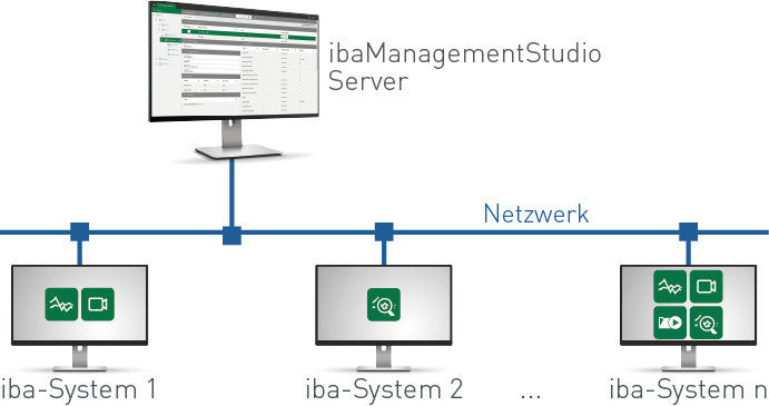 Die einzelnen iba-Systeme können als Agenten mit dem Server verbunden sein und kommunizieren. Der Server initiiert die Verbindung zum Agenten (früher LAN-Verbindung genannt).