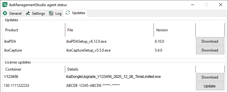 For more information, see Updates via ibaManagementStudio Agent Status.