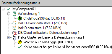 Der aktuelle Status der Datenaufzeichnungen ist im Statusfenster der Datenaufzeichnung ersichtlich.
