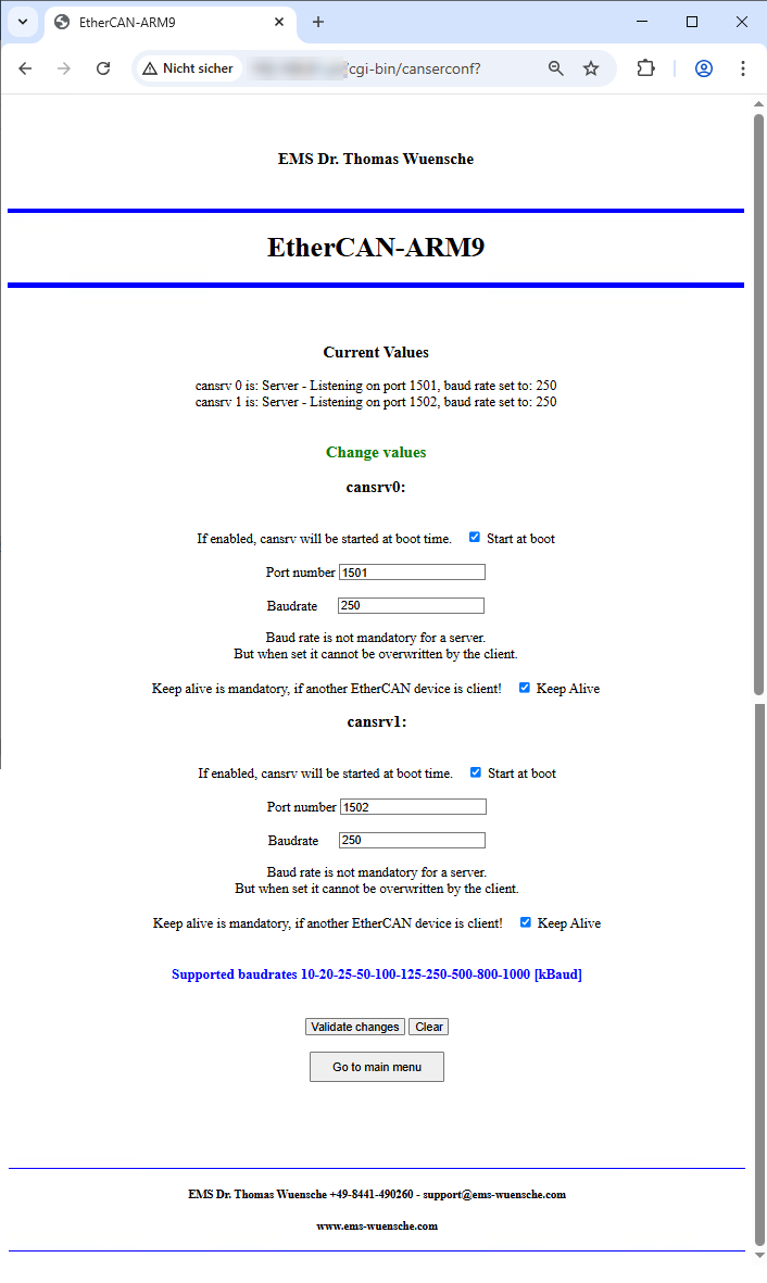 Server Port: 1501 Start at boot: enabled Keep alive: enabled Baudrate: 250 kBaud |