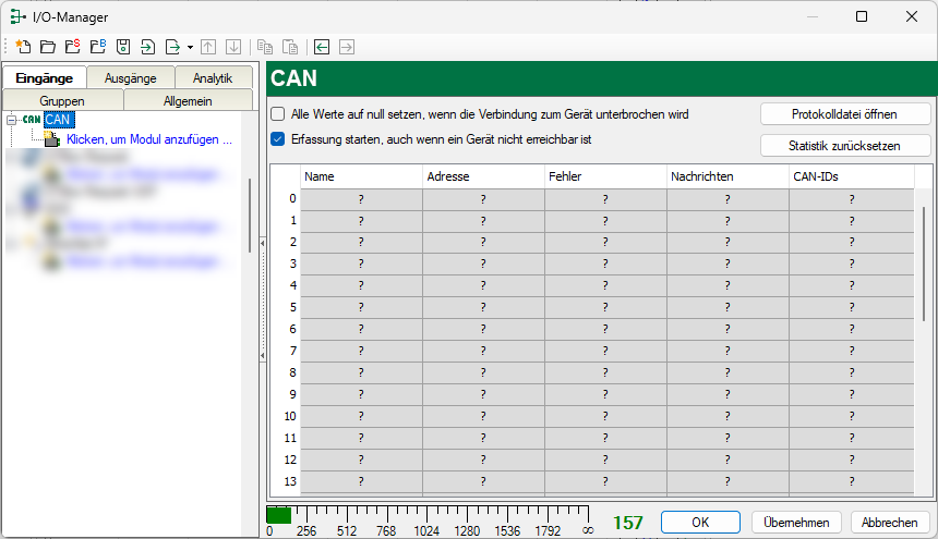 Meldungen, die sich auf die Schnittstelle beziehen, werden in eine separate Protokolldatei geschrieben. Zum Öffnen der aktuellen Protokolldatei, klicken Sie auf <Protokolldatei öffnen>.