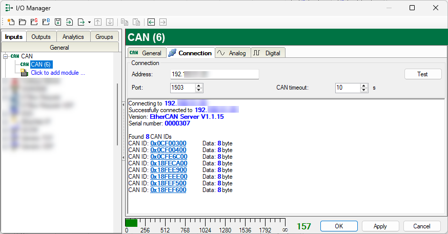 Configure and test the connection to the respective CAN gateway in the Connection tab.