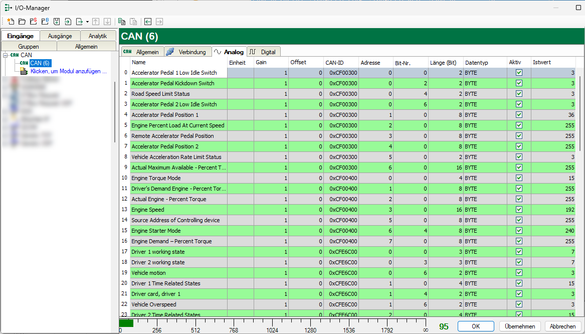 In den Registern Analog und Digital nehmen Sie die Signalkonfiguration für die CAN-Gateways vor.