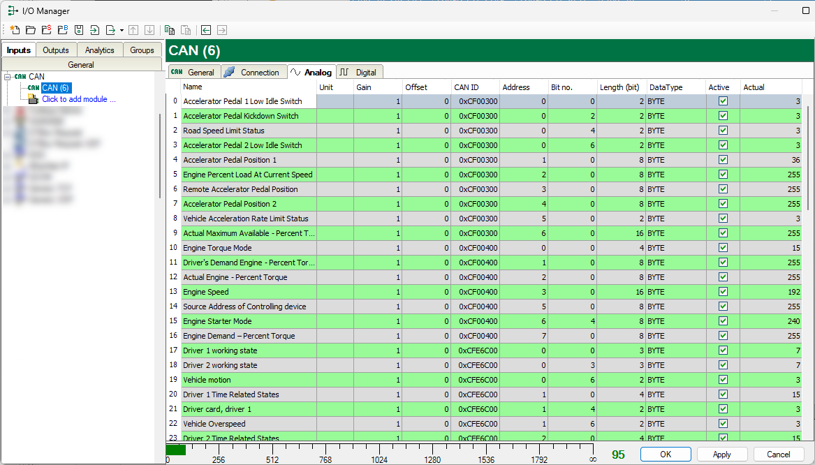 In the Analog and Digital tabs, you can configure the signals for the CAN gateways