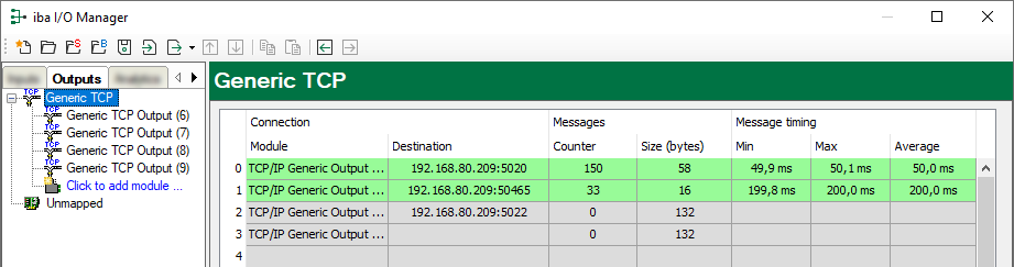The connection is ok and ibaPDA sends the data. |