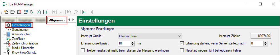 Das "Totmann-Timeout" konfigurieren Sie für alle von ibaPDA unterstützen TCP- und UDP-Protokolle gemeinsam.