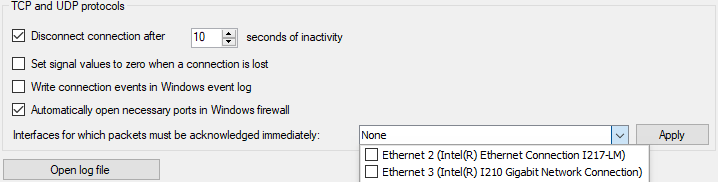 The "Alive timeout" is configured jointly for all TCP/IP and UDP protocols supported by ibaPDA.
