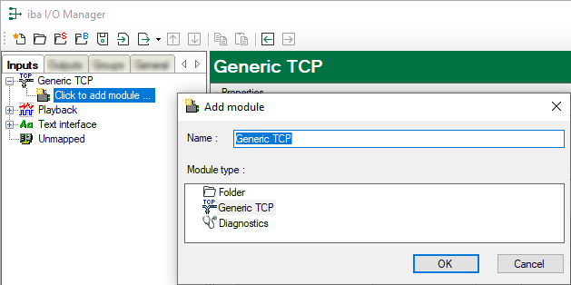 Select the desired module type in the dialog box and assign a name via the input field if required.