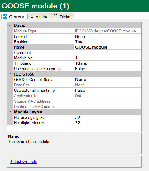 The GOOSE module offers communication as per IEC 61850 Generic Object Oriented Substation Events (GOOSE) protocol.