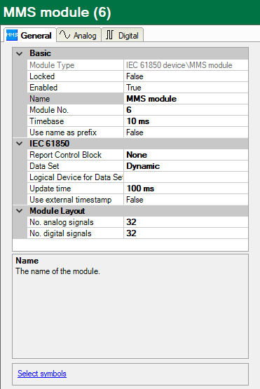The MMS module offers communication as per IEC 61850 manufacturing messaging specification (MMS) protocol.