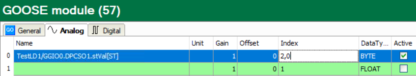 If no GOOSE control block is used (MMS communication is not supported), then the signal is not assigned via the symbol, but via the index of the data in the telegram. The data type must also be selected manually.