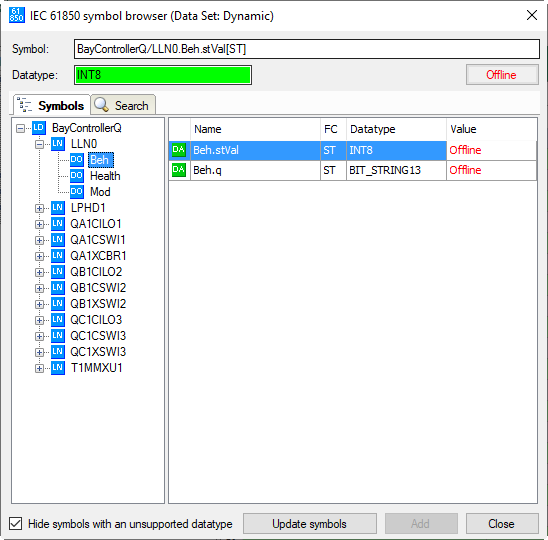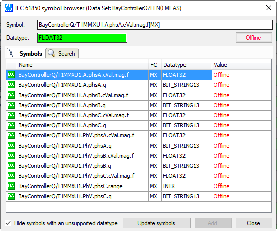 By means of the checkbox “Hide symbols with an unsupported datatype” you can hide all not supported data types. |