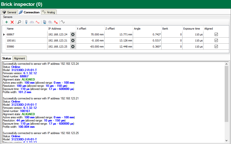 button (for all sensors), the current profile is retrieved and displayed in the Alignment tab.