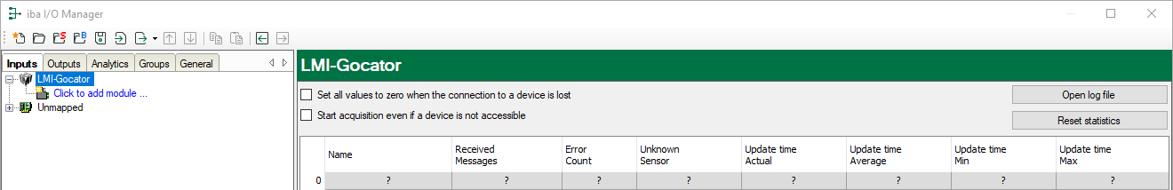 If this option is activated, all measured values of the sensor are set to zero as soon as the connection is lost. If this option is disabled, ibaPDA will keep the last valid measured value at the time the connection was lost in the memory.