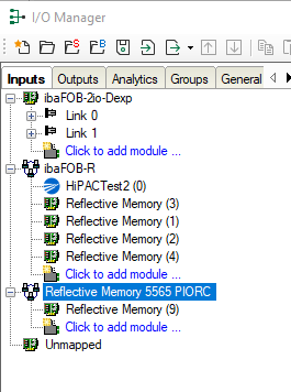 The interfaces are only visible if the Reflective Memory license is enabled (USB dongle or soft license) and a Reflective Memory interface board or ibaFOB-R board is installed in the PC.