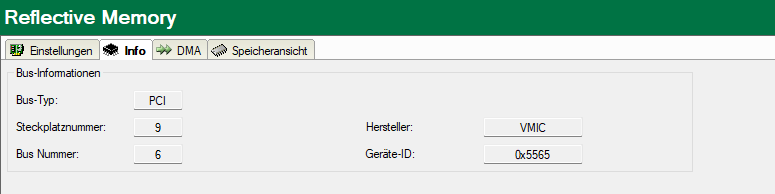 Markieren Sie im Schnittstellenbaum die Schnittstelle Reflective Memory und wählen das Register Info.
