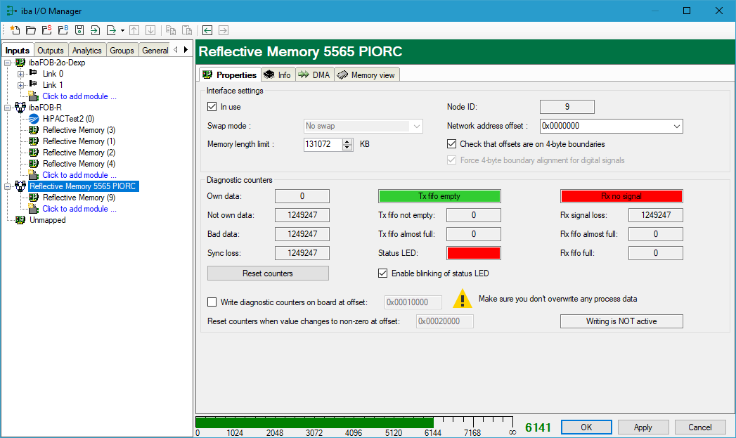 This parameter describes the size of the mapped memory space. You should adjust the memory size according to your needs, either by means of the up/down arrows or by entering a value. Reduce the size if you do not need that much memory length. This will save memory space in the ibaPDA computer.