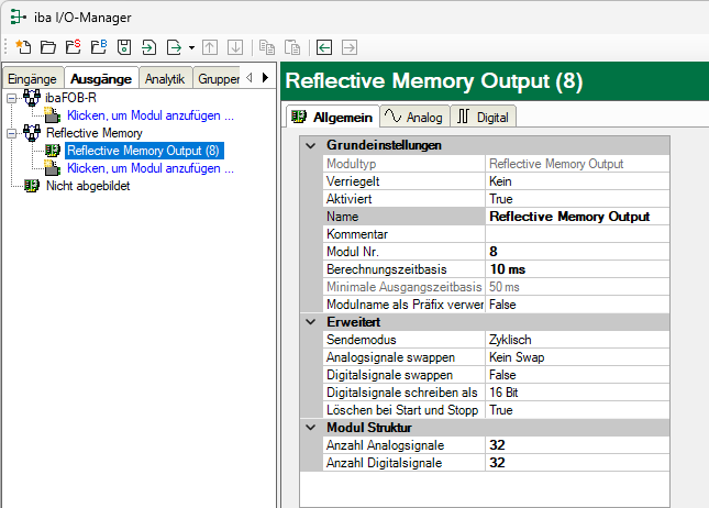 Grundeinstellungen siehe Allgemeine Moduleinstellungen und Reflective Memory - Register Allgemein