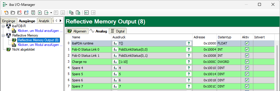 Konfiguration Reflective Memory-Ausgangssignale