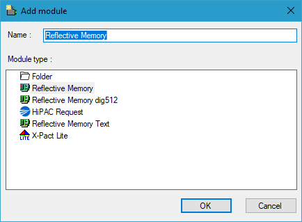 There are different types of modules, which can be added to the Reflective Memory interface.