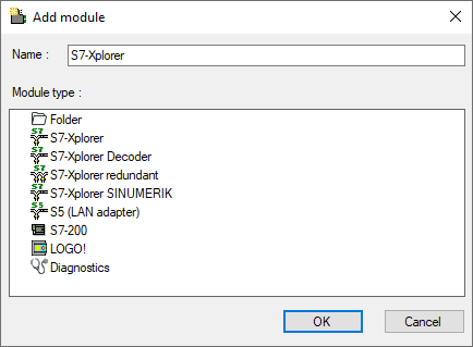 Select the desired module type in the dialog box and assign a name via the input field if required.