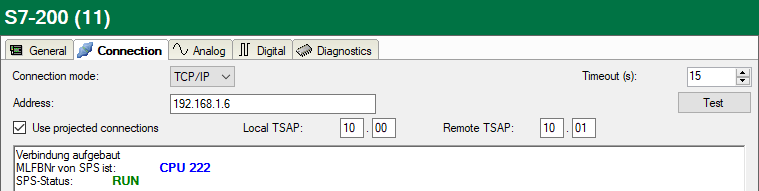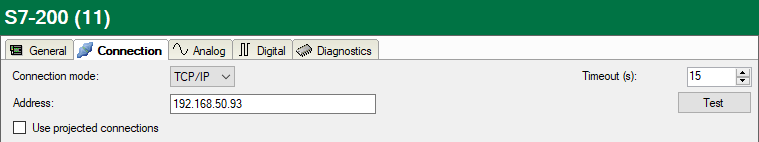 When you enable the Use projected connections option, you have to enter Local TSAP and Remote TSAP as well.