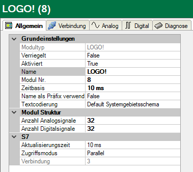 Bei Anbindung einer LOGO! 0BA8 verwenden Sie bitte "01.00" als lokalen TSAP und remote TSAP.